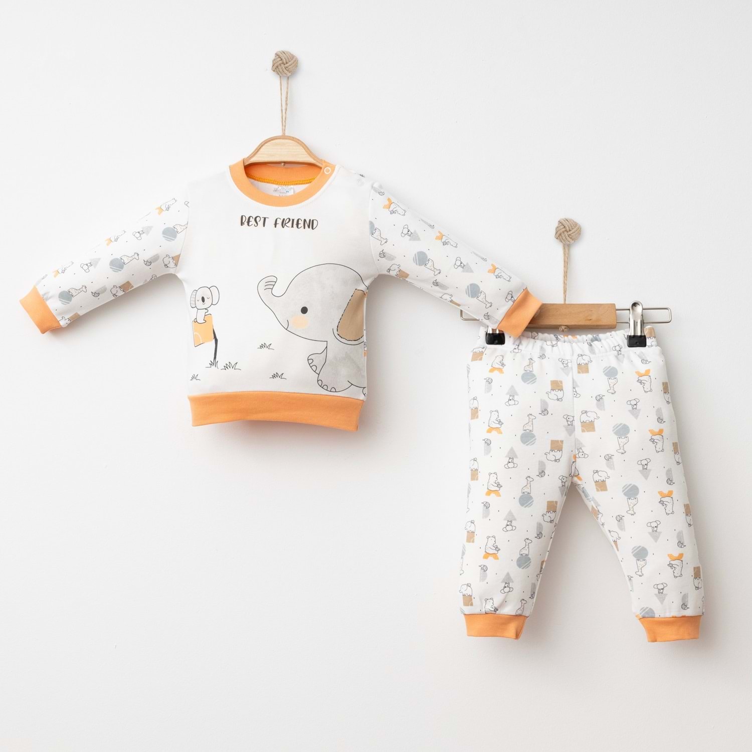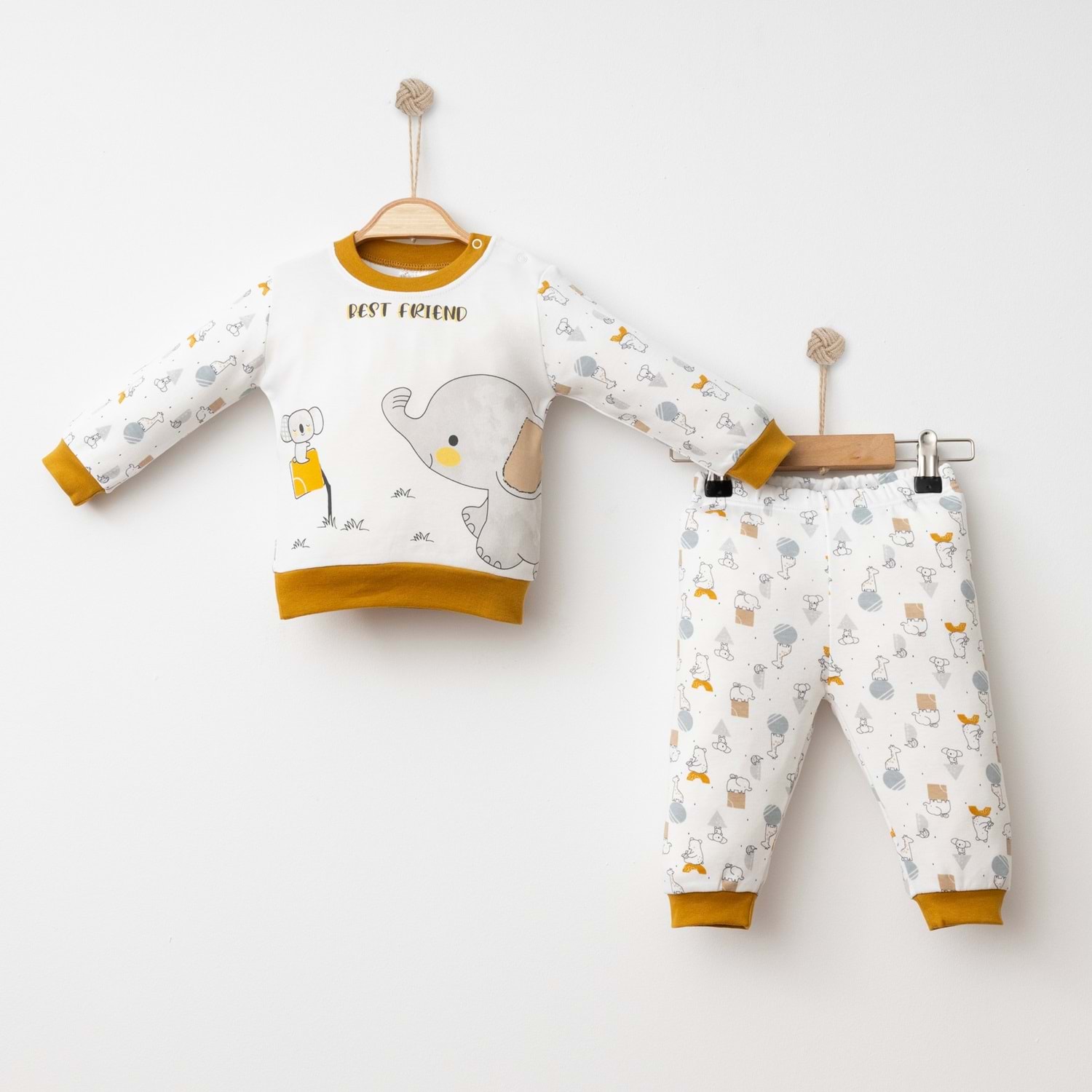 Fil desenli bebek takımı, hem kız hem erkek bebekler için uygun olup günlük kullanımda ve özel günlerde şıklık arayan ebeveynler için mükemmel bir tercihtir.