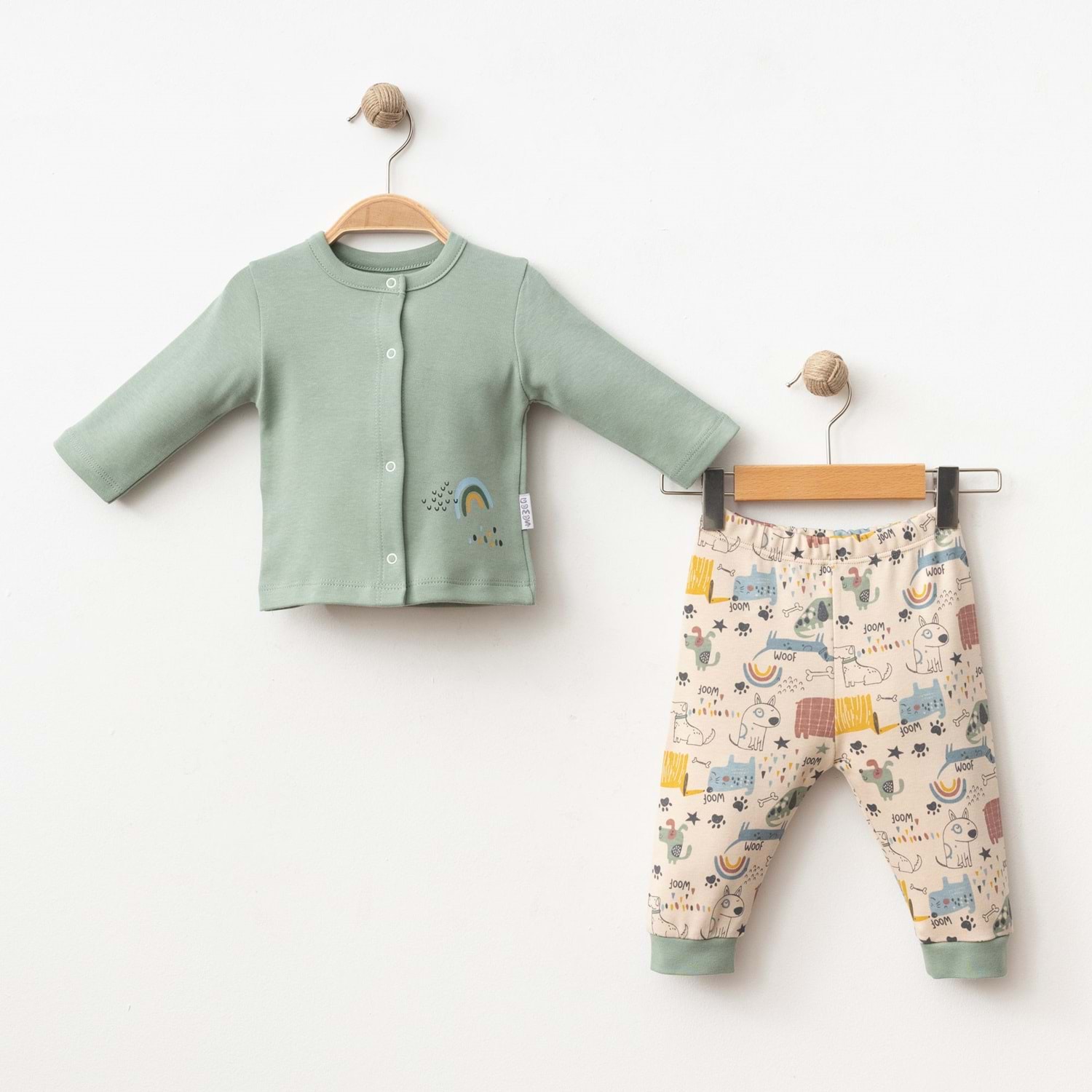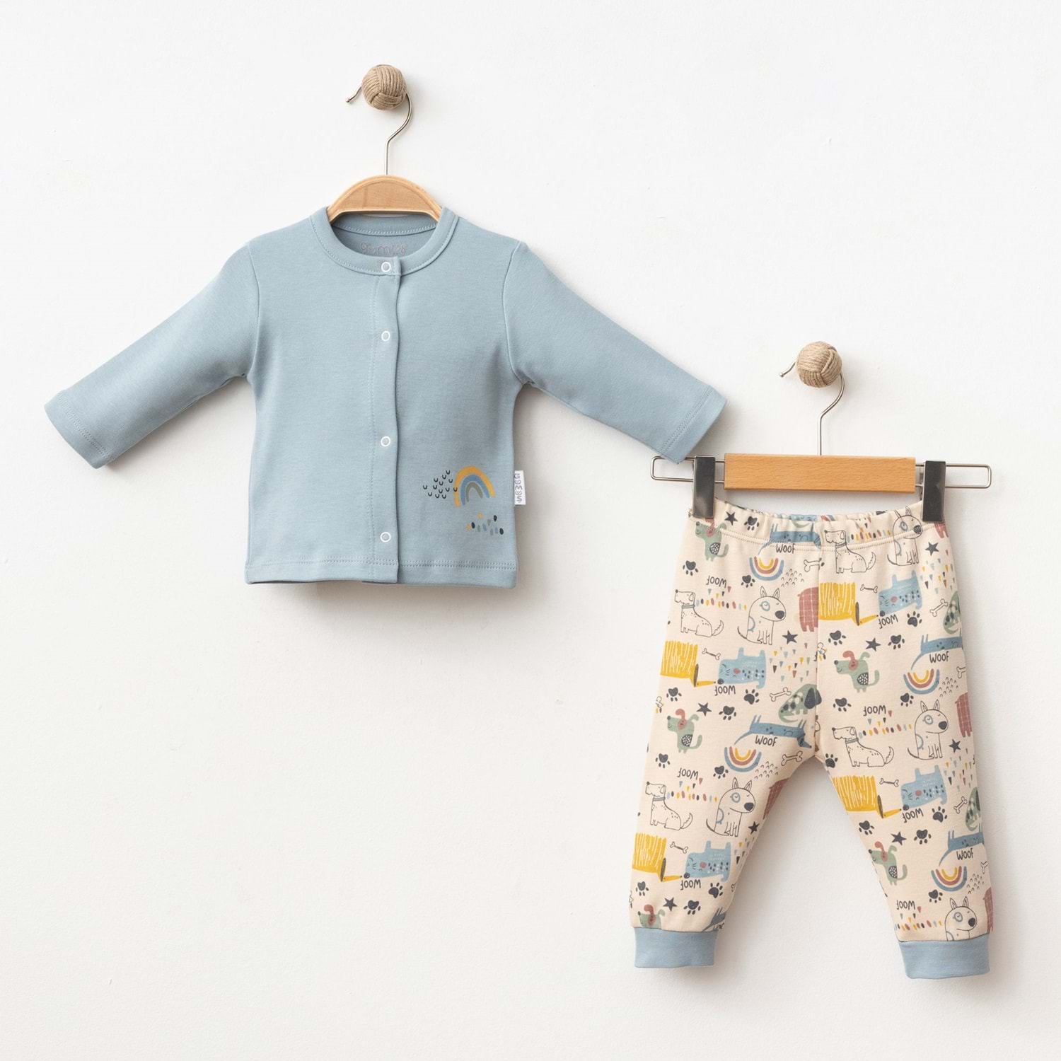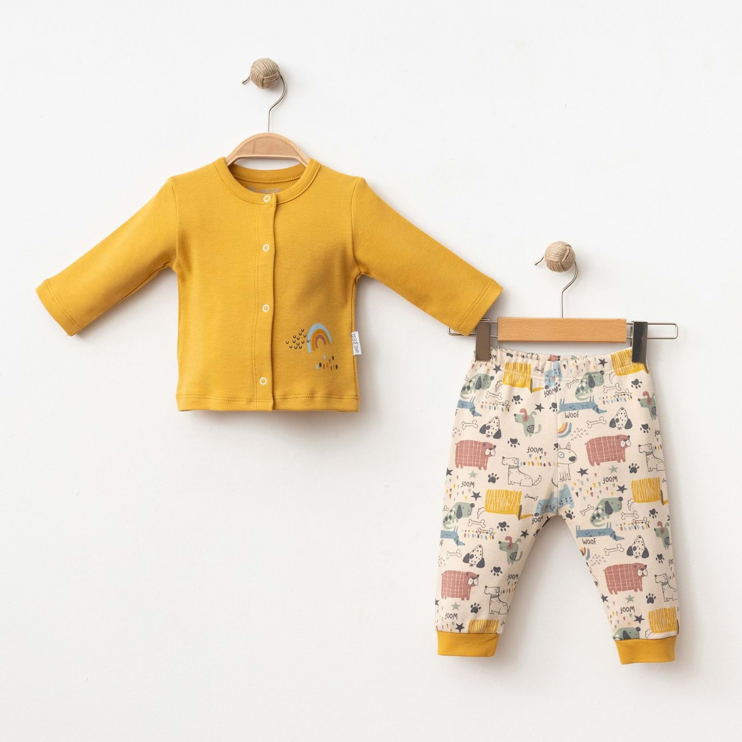 Gül kurusu bebek takımı, modern renk paleti ve sevimli desenleriyle hem kız bebekler için şık hem de rahat bir alternatiftir. Yeni doğan ve bebek kombinlerinde zarif bir tercih arayan ebeveynler için ideal bir settir.