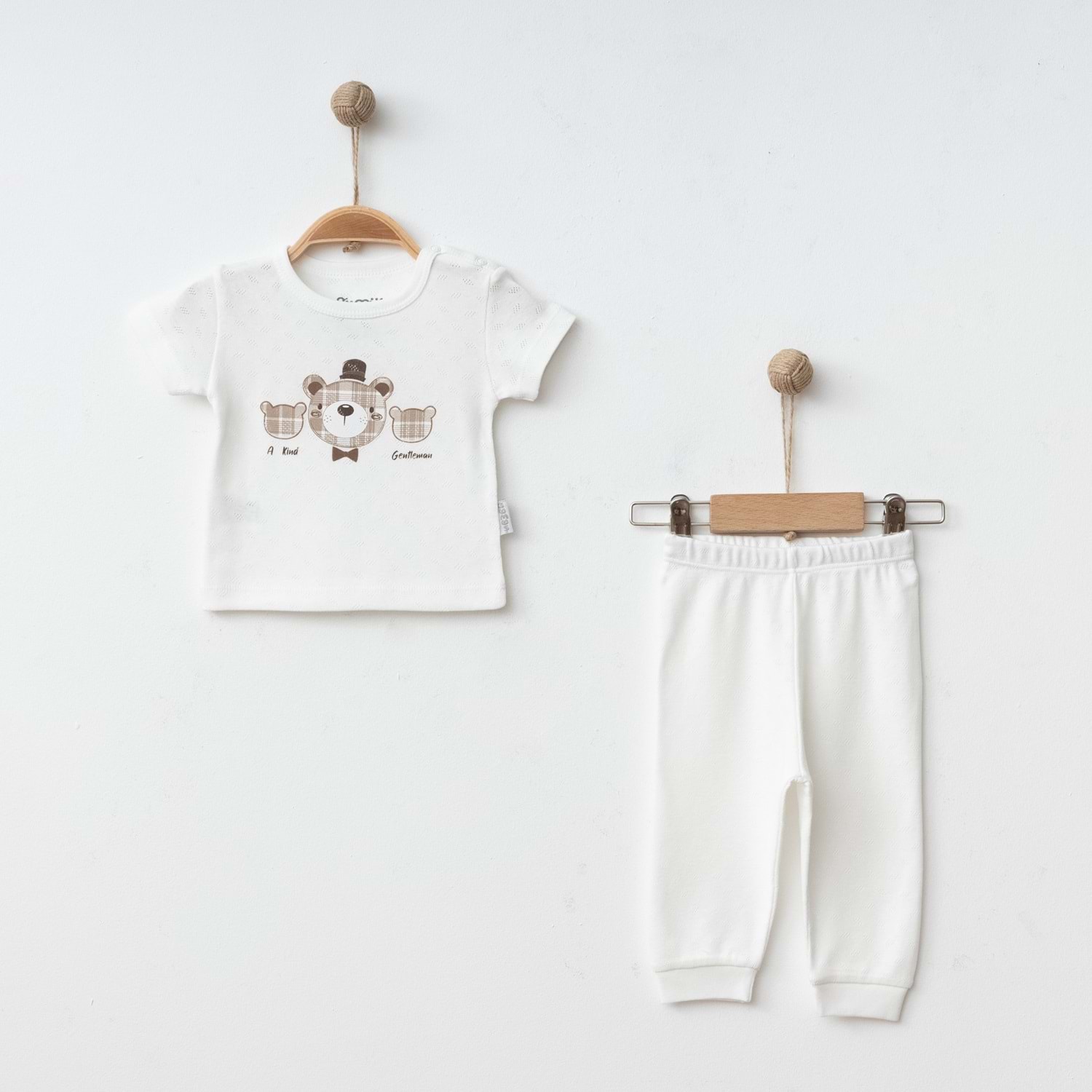 Ayıcık desenli bebek takımı, kız ve erkek bebekler için uygundur. Yeni doğan kombinleri, hastane çıkışı ve günlük kullanım için ideal bir tercihtir.