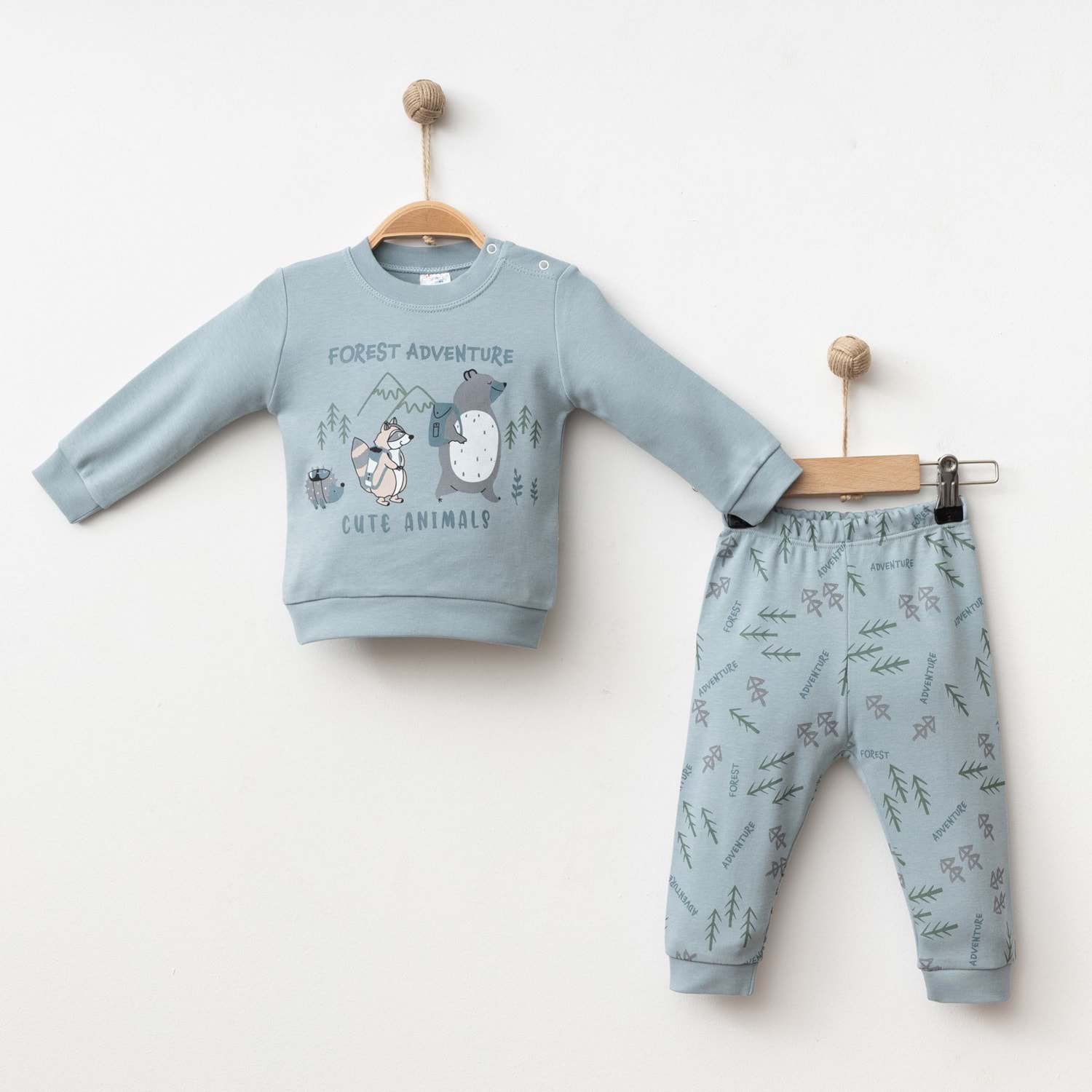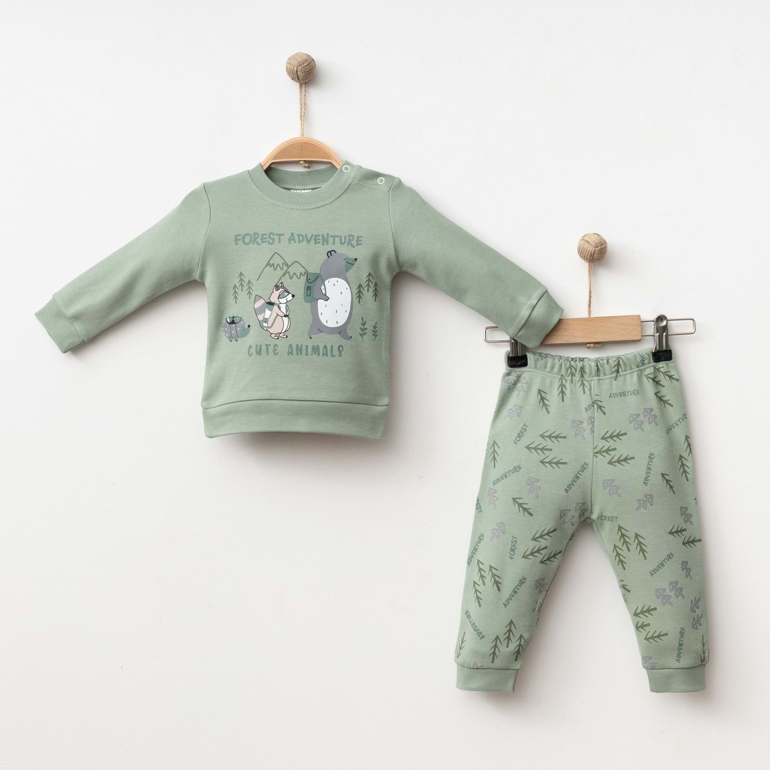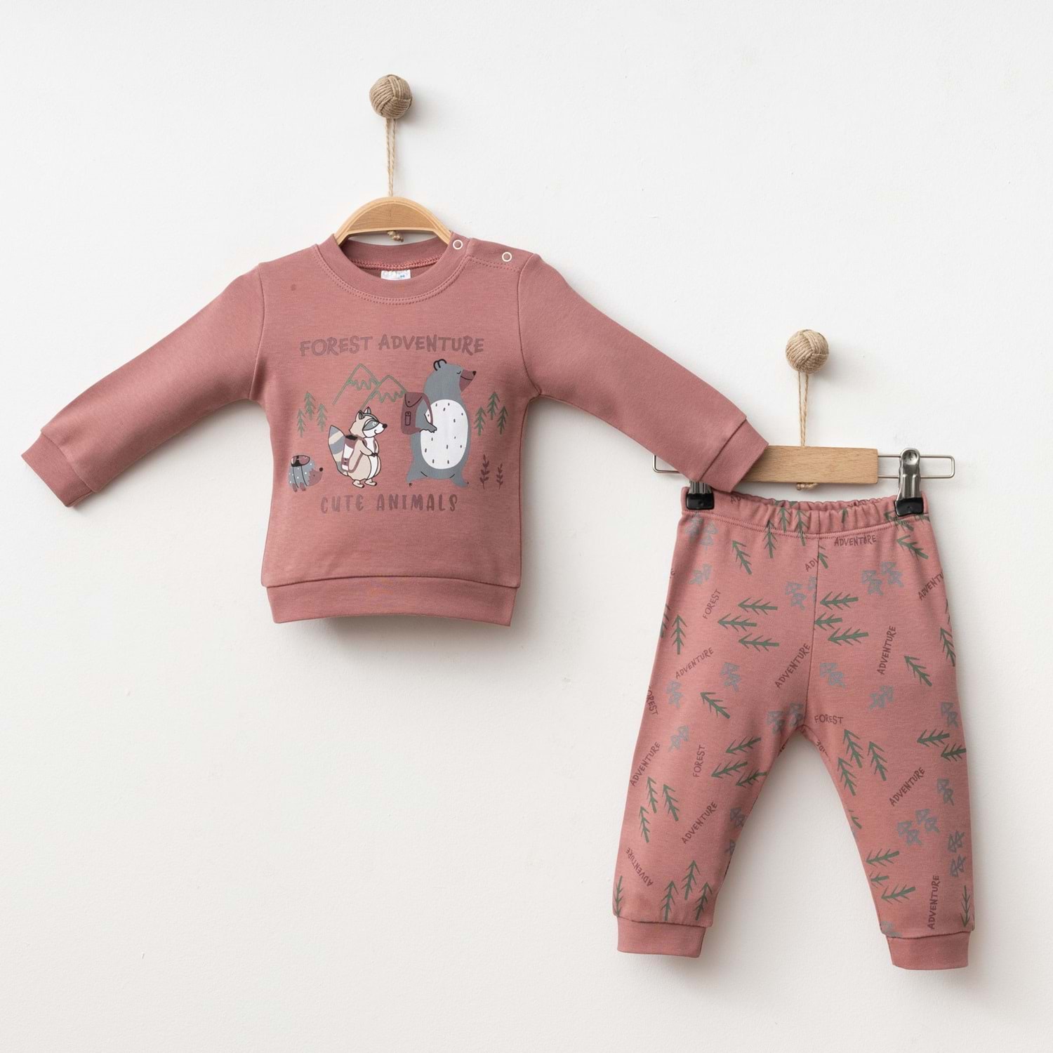 Hayvan desenli bebek takımı, hem kız hem erkek bebekler için uygundur. Günlük kullanımda rahatlık ve doğal bir stil arayan ebeveynler için mükemmel bir seçimdir.