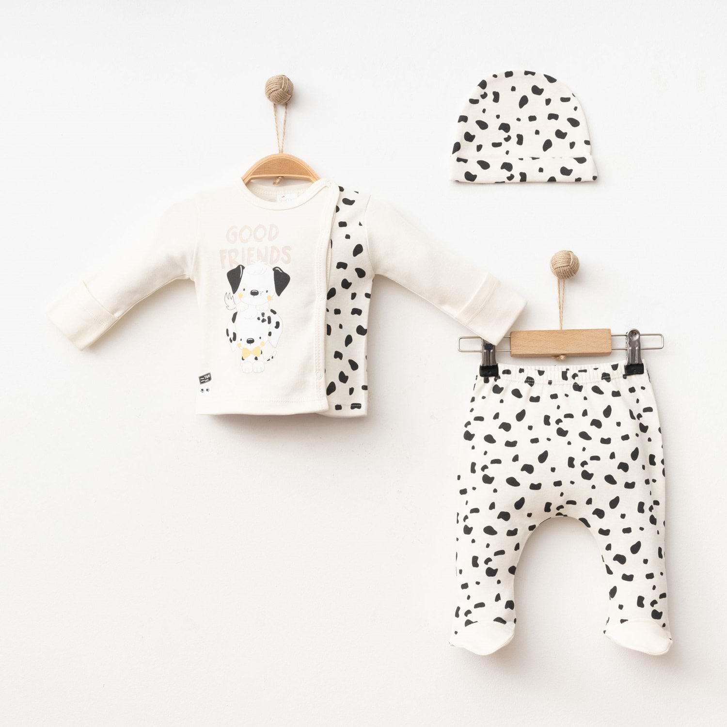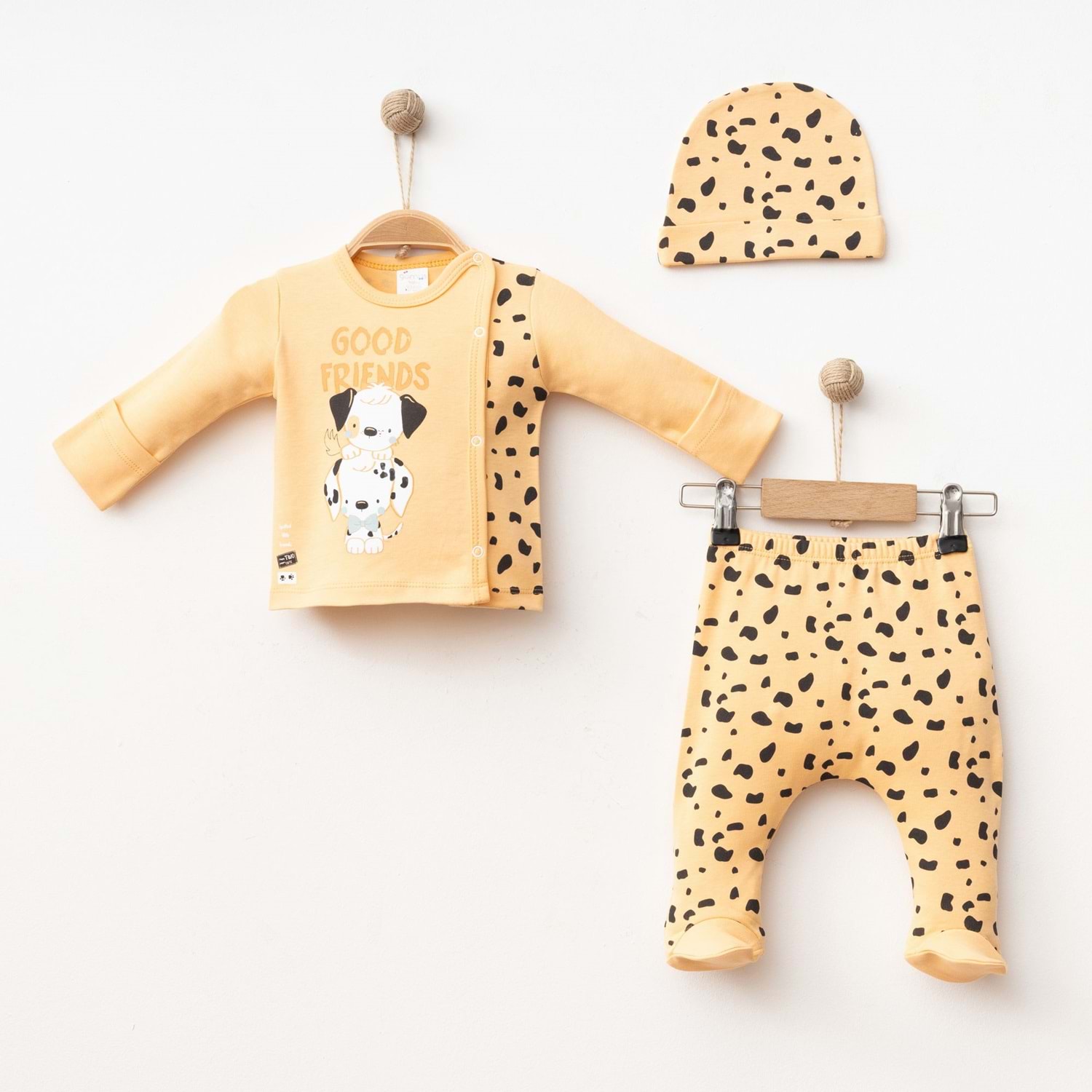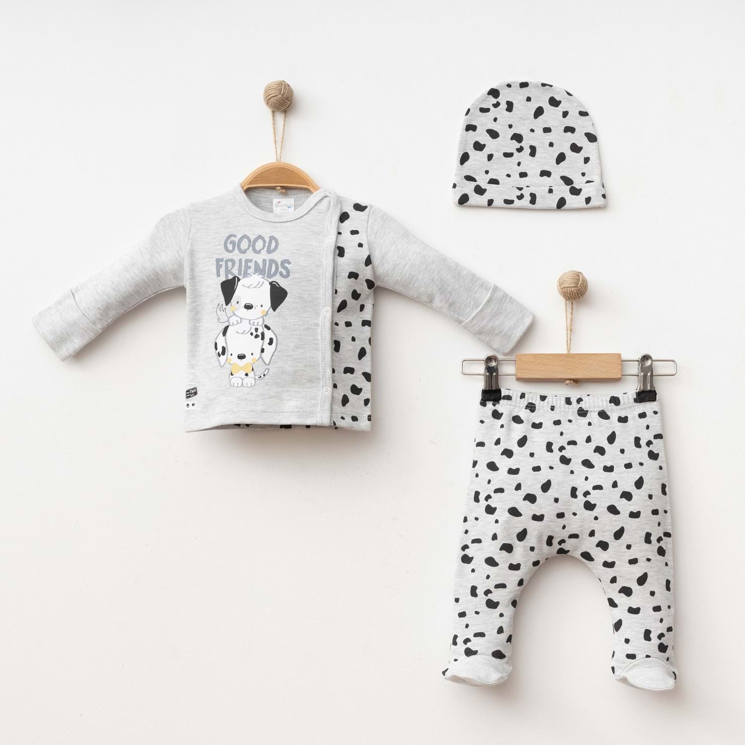 Konforu, şıklığı ve eğlenceli tasarımı bir arada sunan bu erkek bebek pamuklu 3’lü takım, bebeğinizin gardırobunda vazgeçilmez bir parça olacaktır.