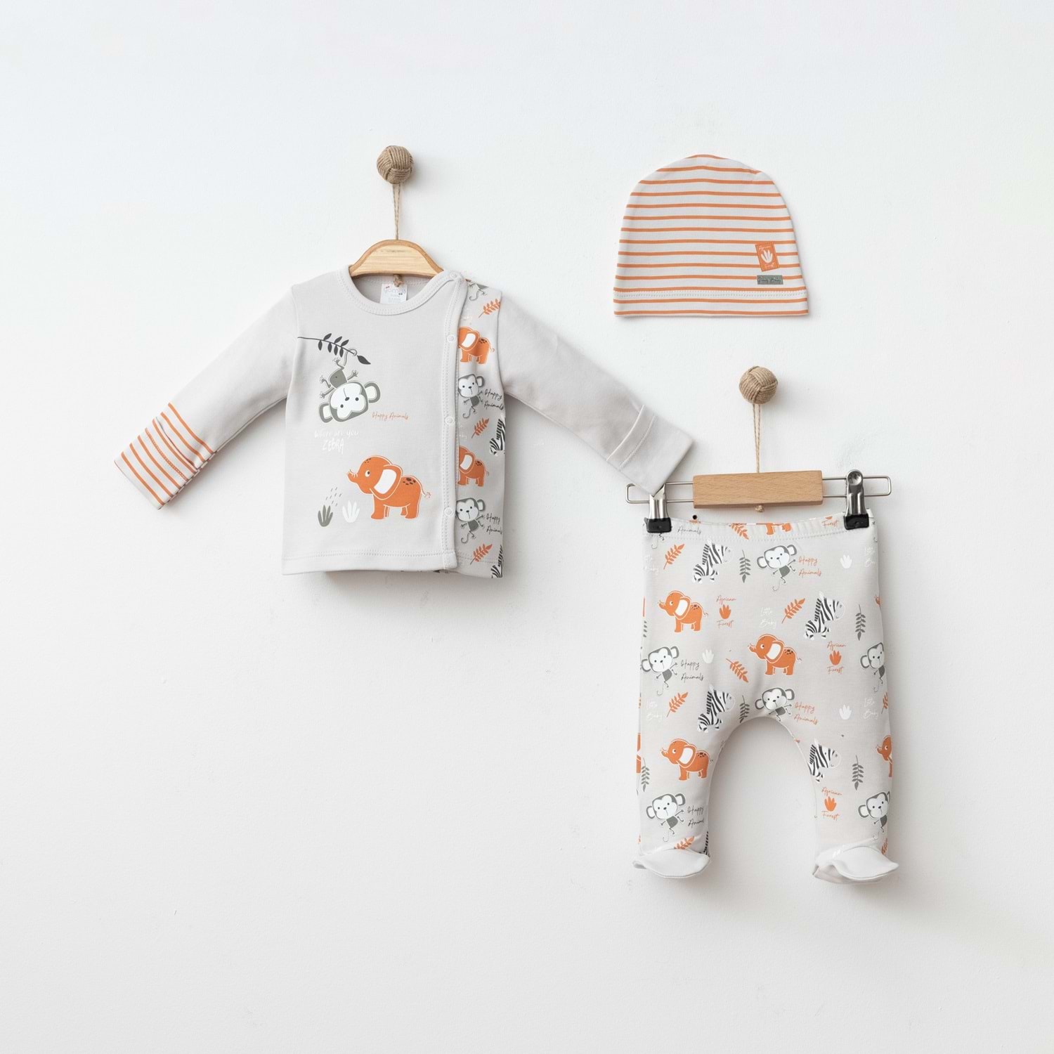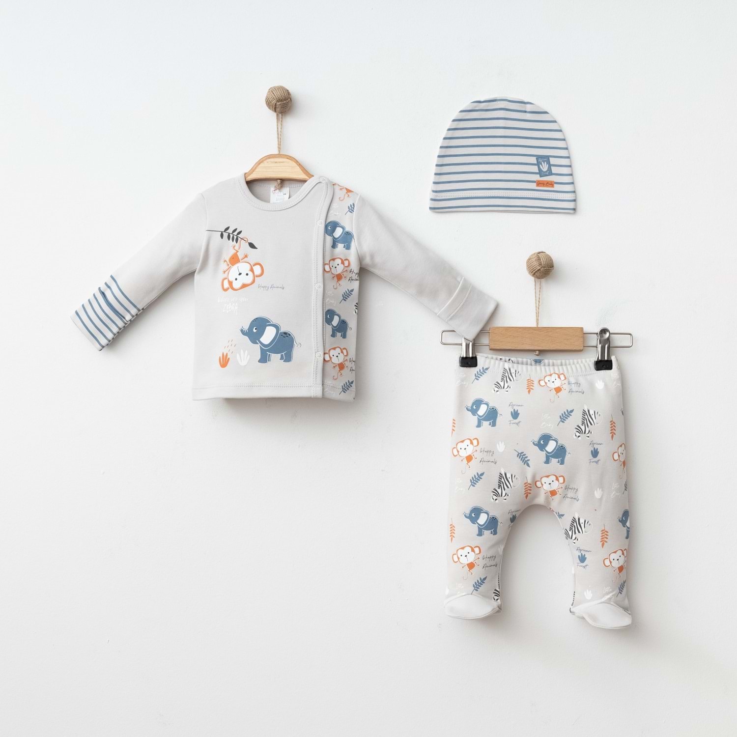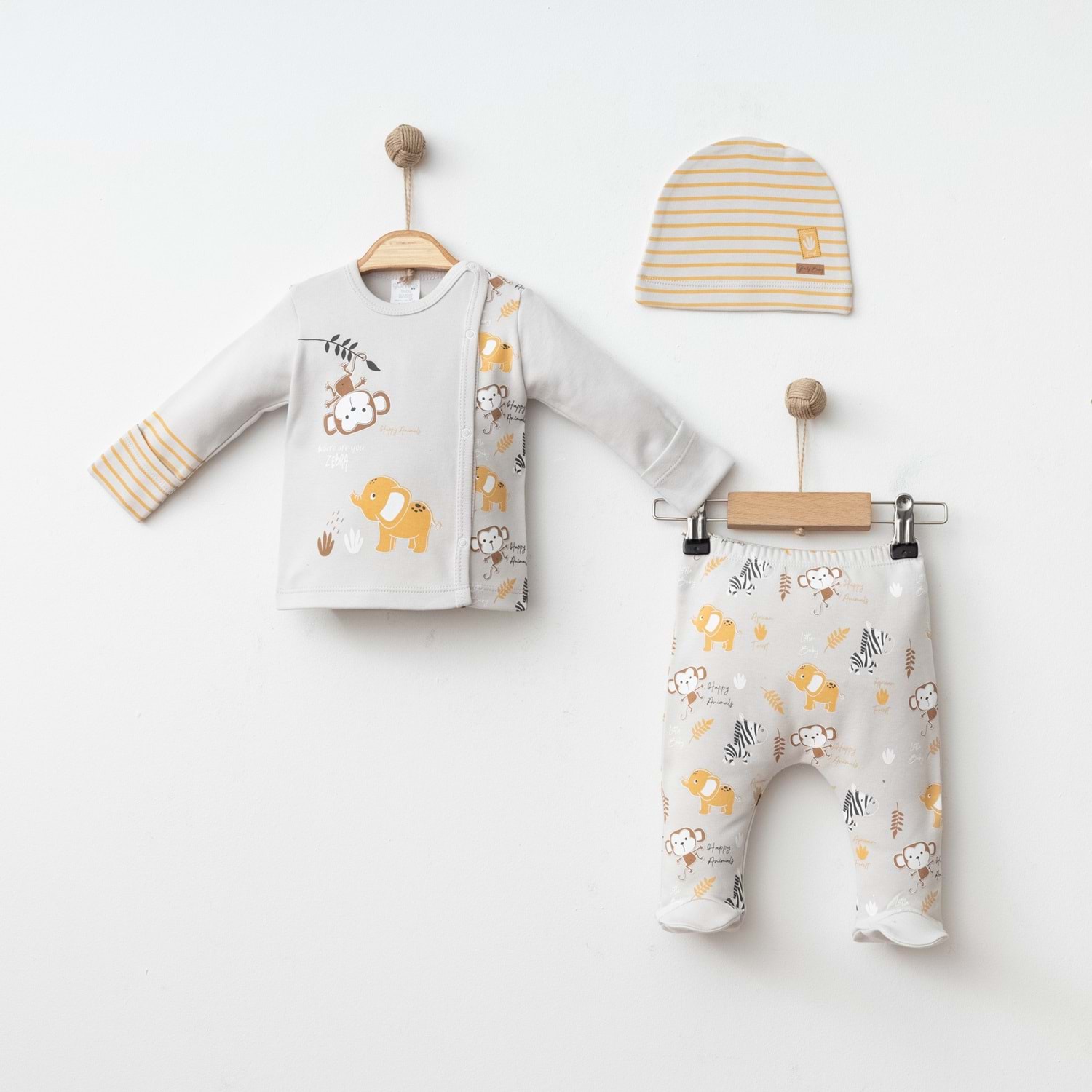 Yumuşak dokusu, kaliteli pamuklu yapısı ve sevimli desenleriyle bu erkek bebek 3’lü pamuklu takım, bebeğinizin gardırobunda hem şık hem de kullanışlı bir parça olacaktır.