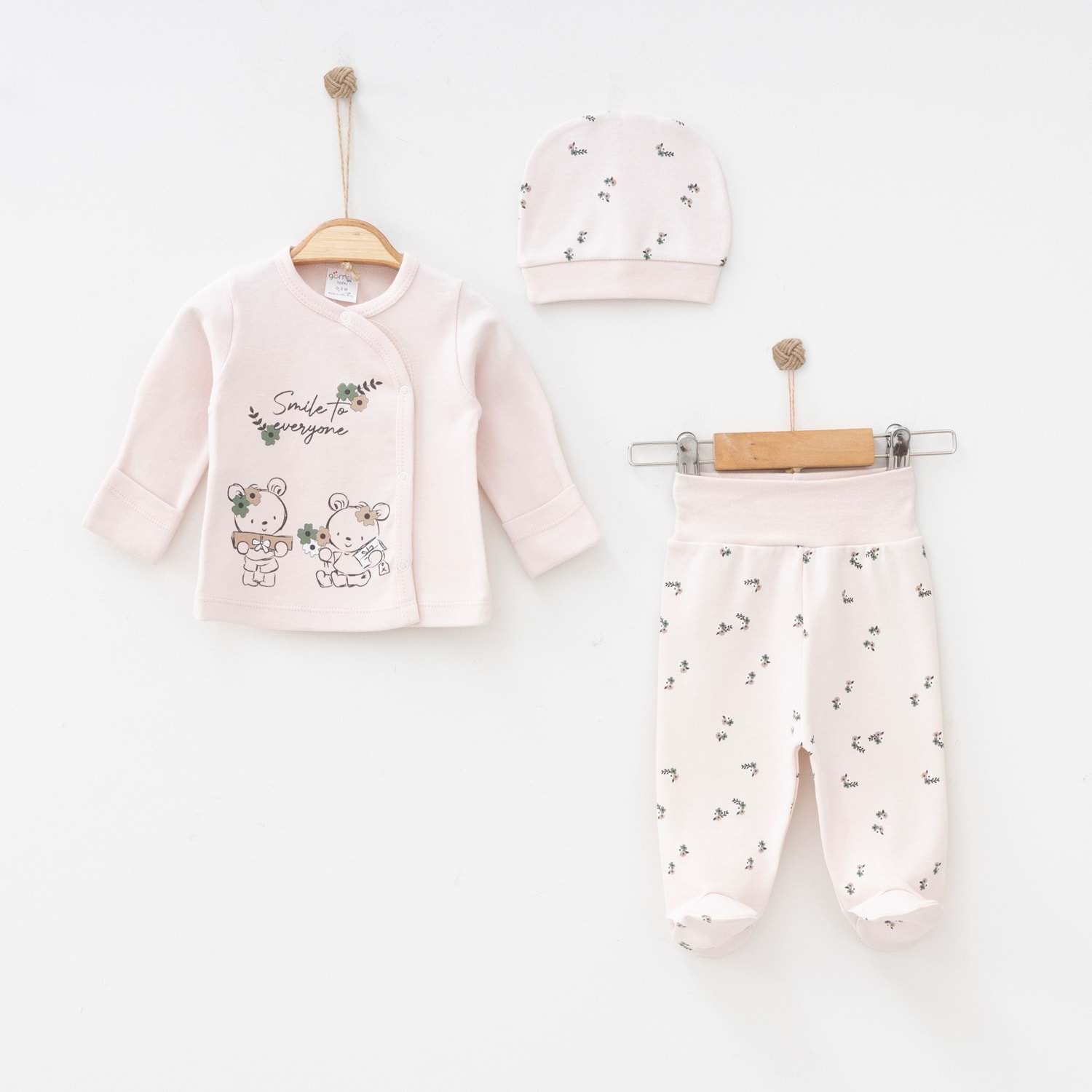 Bu kız bebek hastane çıkışı 3’lü set, hem günlük kullanım hem de doğum hediyesi olarak mükemmel bir seçimdir. Doğal, şık ve konforlu yapısıyla bebeğiniz için güvenle tercih edebilirsiniz.